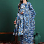 Blue Floral Print A-Line Maternity Kurta Trouser Dupatta Set