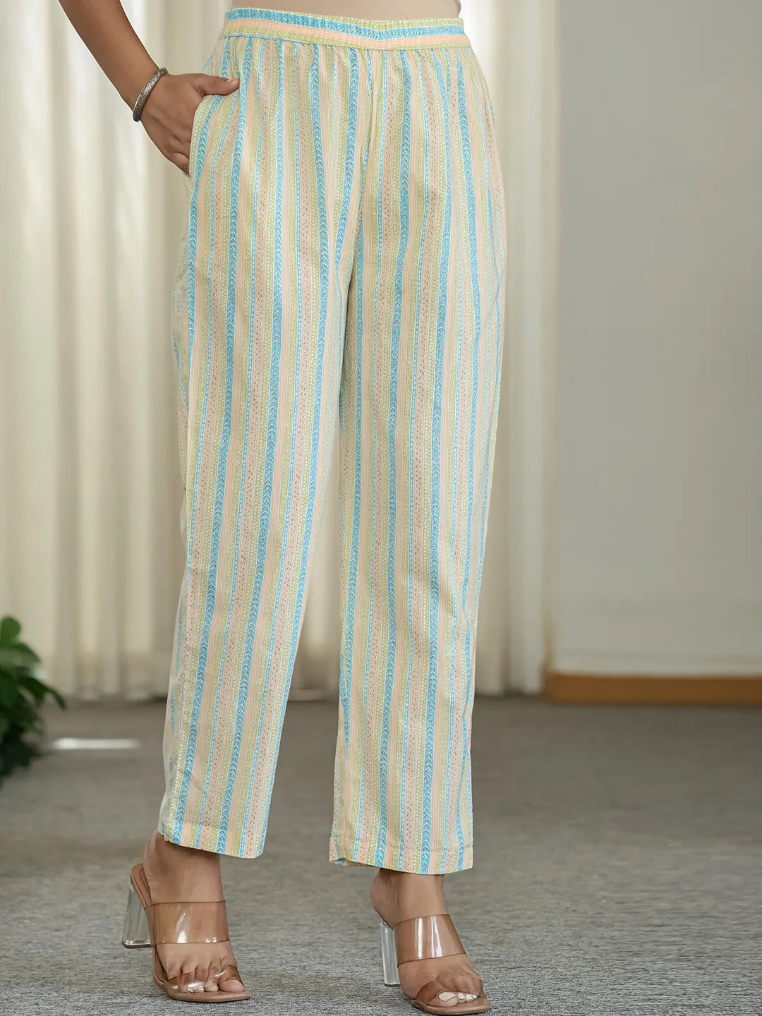 Blue Floral Straight kurta Trouser Dupatta Set Kurta Design Pattern Coverage Yoke or Border Straight Shape Three quarter sleeve(Regular Sleeves) V-Neck Calf Length Kurta Straight Hem Machine Weave Cotton Trouser Design:One pocket Pure Cotton Trouser Slip-On Waist Size & Fit Material & Care Pure Cotton Dry Clean