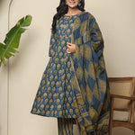 Blue Pure Cotton Maternity Kurta Set With Dupatta