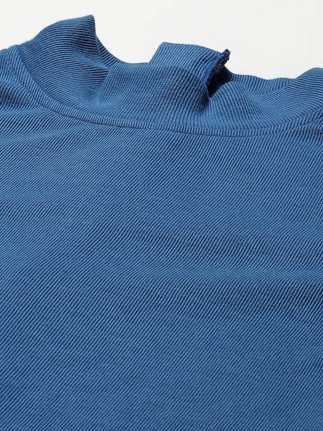 Blue Rib Turtle Neck Zipped Bodycon Dress