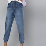 Blue Street Wear Jogger Jeans, in Denim fabric, Unlined, Full Length , Comfort Fit, Button Closure, Straight Hemline and features Pocket At Side