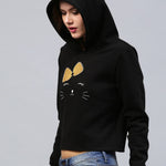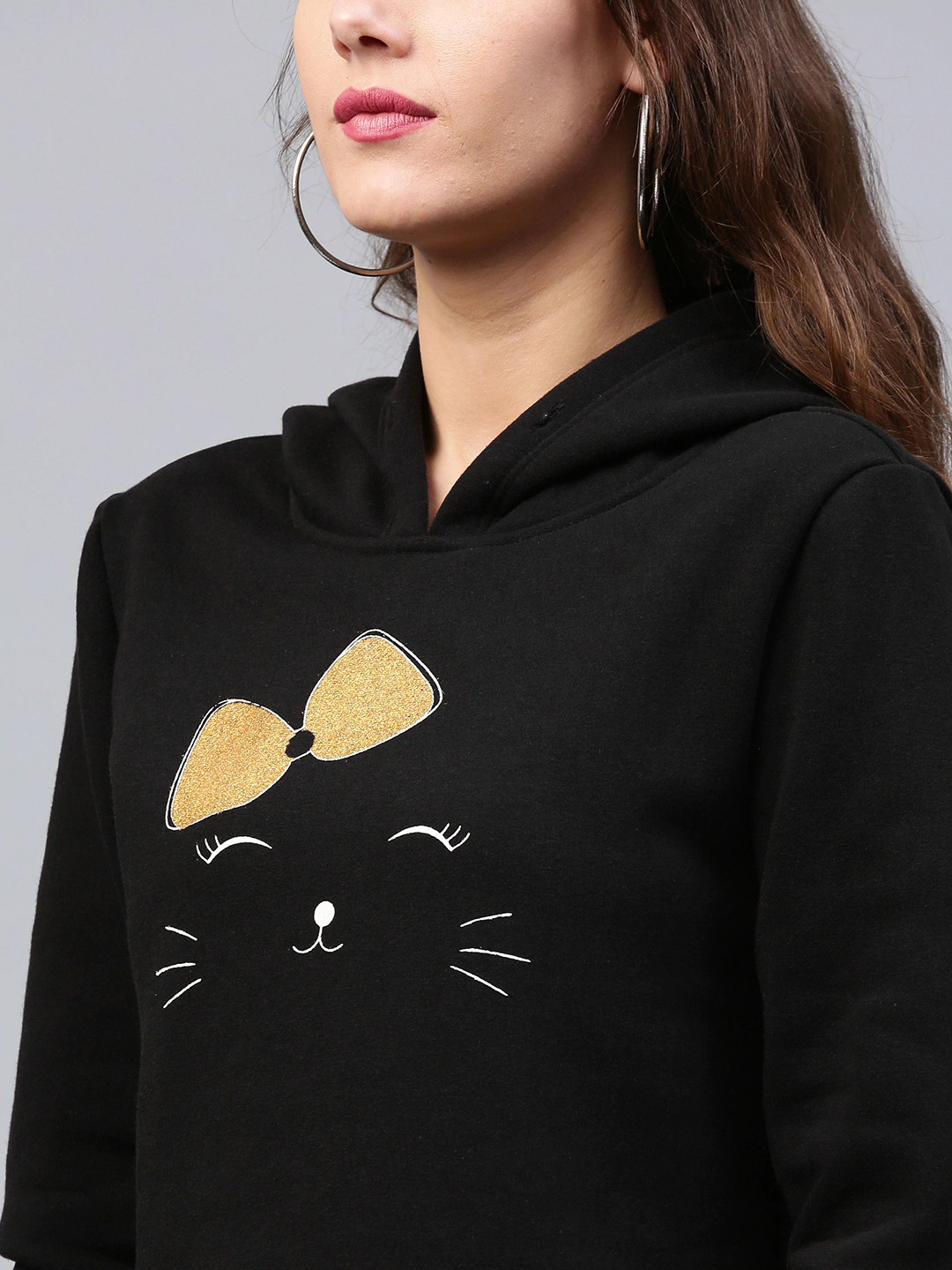 Bow Kitty Black Sweatshirt, in Fleece fabric, Unlined, Cropped Length, Regular, No Closure, Straight Hemline and features Glitter Print