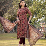 Brown printed Kurta with Trousers with dupatta
