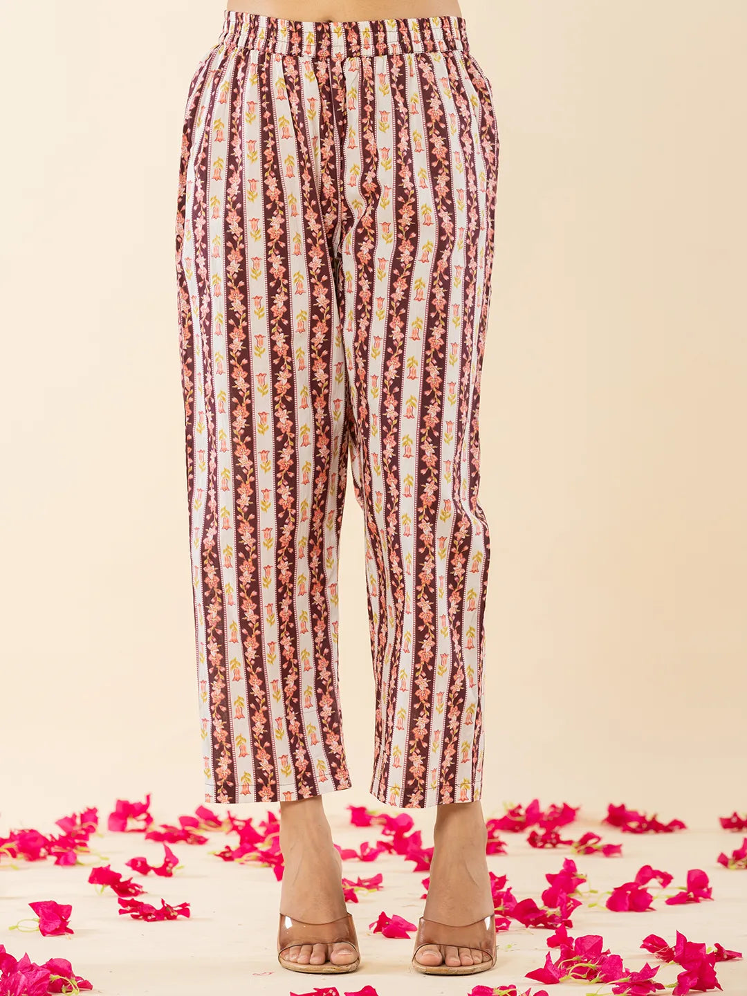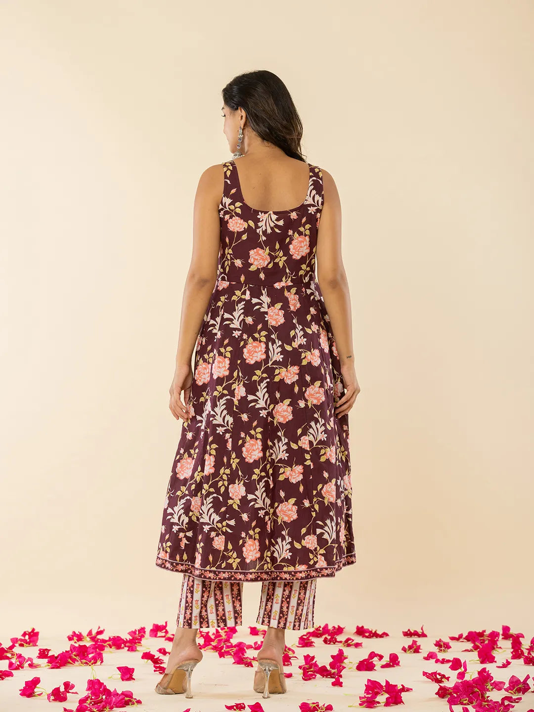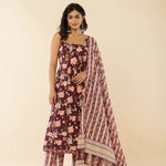 Brown Sleeveless Cotton Kurta With Dupatta Set