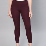 Burgundy Pintuck Jegging, in Roma fabric, Unlined, Ankle Length, Slim Fit, Elasticated Waist line , Straight Hemline and features Pintuck Detail At Front