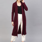 Burgundy Rib Longline Shrug, in Flat Rib fabric, Unlined, Calf Length, Comfort Fit, No Closure, Straight Hemline and features Patch Pocket Detail