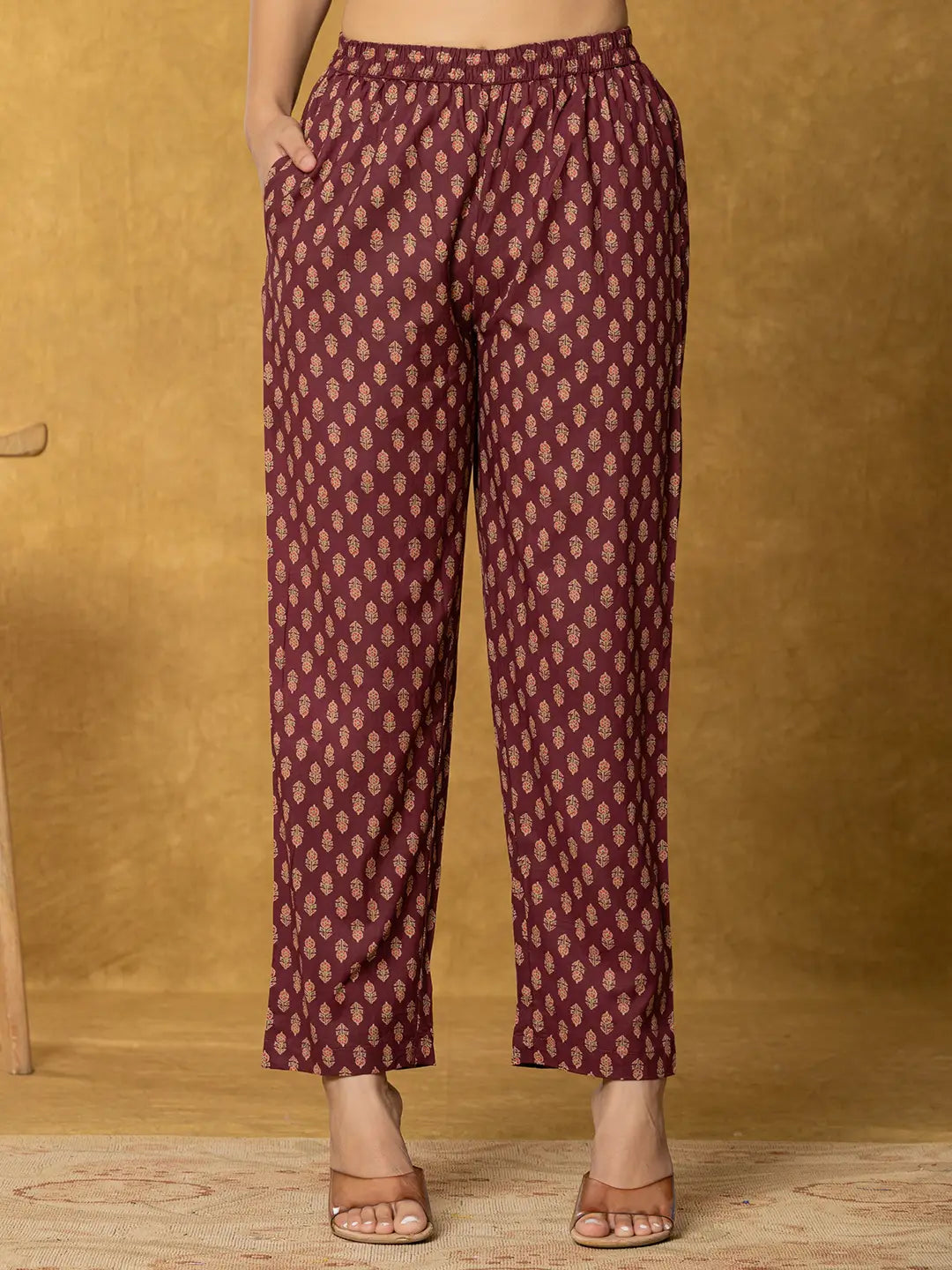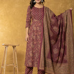 Burgundy Sequins Work Cotton Anarkali Kurta Dupatta Set