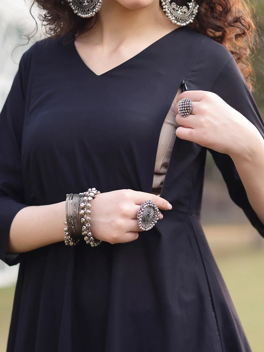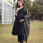 Cotton Black Materinty Kurta Set With Dupatta
