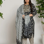 Black Paisley Pure Cotton Straight PLUS SIZE Kurta And Trouser with dupatta Set
