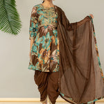 Cotton Brown Zari Work Kurta Dhoti Dupatta Set