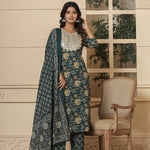 Cotton Green Embroidered Festive Wear Kurta Dupatta Set