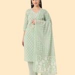 Green Ethnic Motifs Embroidered Regular Chikankari Pure Cotton Kurta With Trousers & With Dupatta