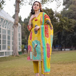 Cotton Lime Green Straight Pakistani Kurta Trouser Dupatta Set