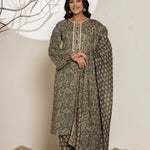 Military Green Cotton Pakistani Kurta Dupatta Set With Pant