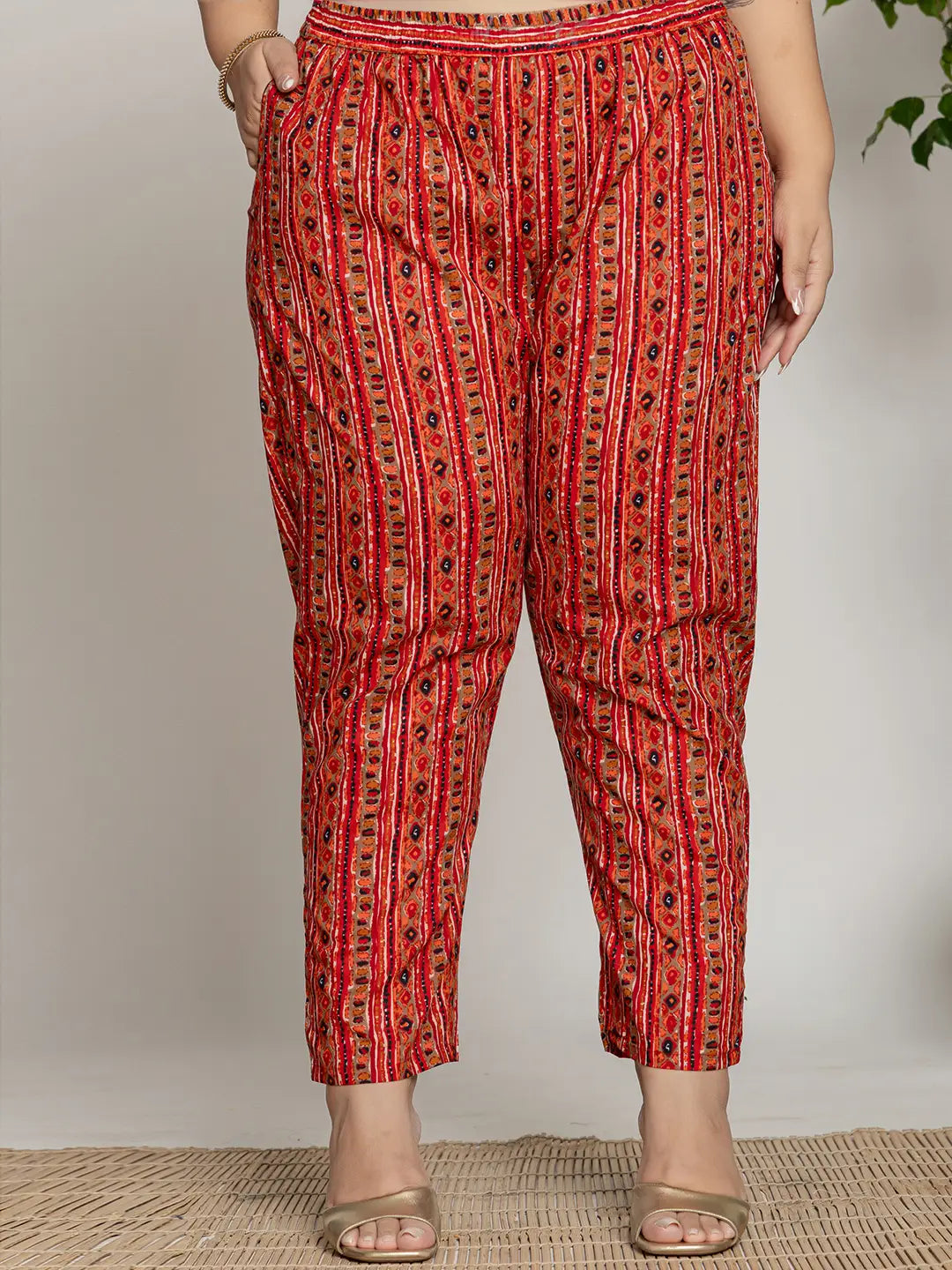 Red embroidered Plus Size Kurta with Trousers with dupatta