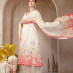 Cream And Peach Mul Chanderi Silk Floral Print Anarkali Kurta Trouser Dupatta Set