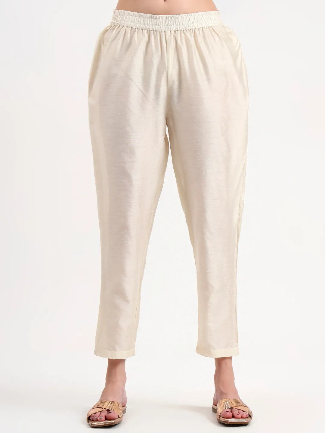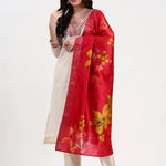 Cream Chanderi A Line Dori Embroidery Kurta Set With Pant And Dupatta