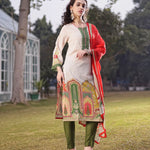Cream Cotton Pakistani Straight Kurta Trouser Dupatta Set