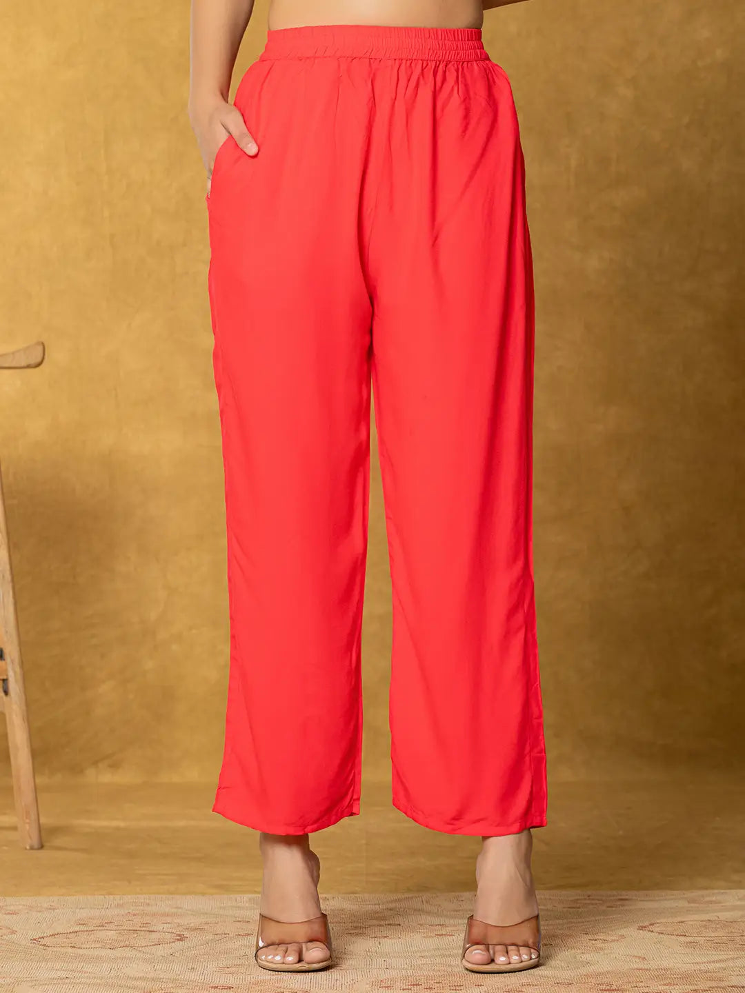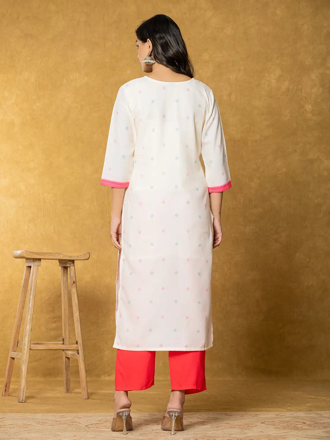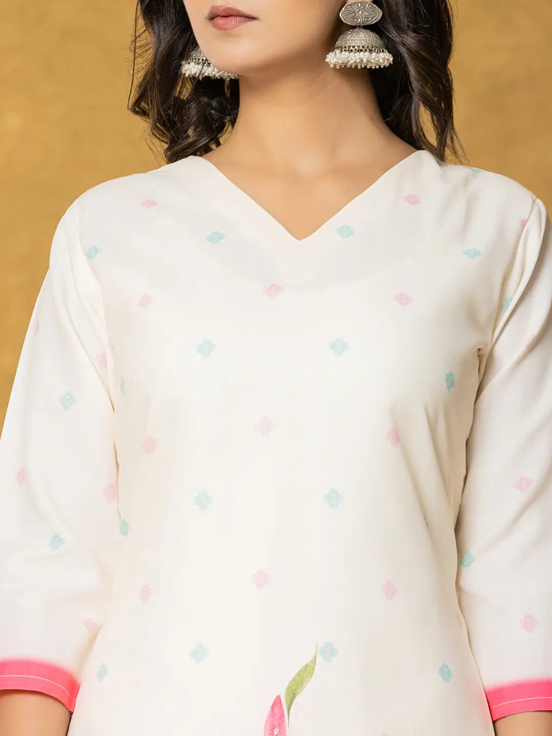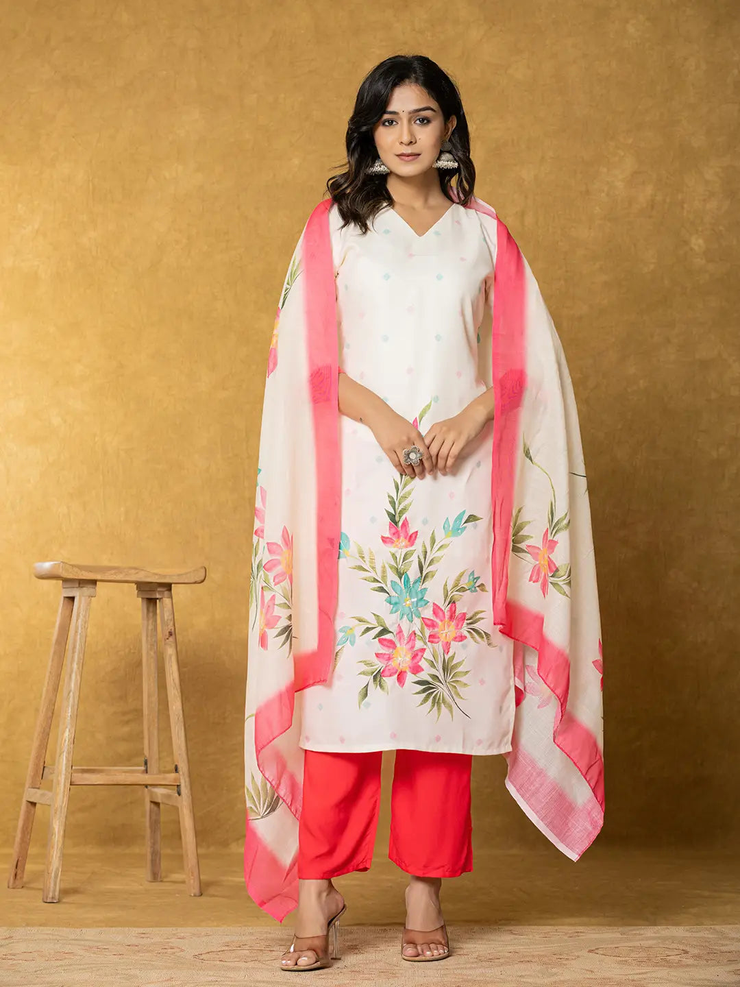 Cream-coloured printed Kurta with Palazzos with dupatta