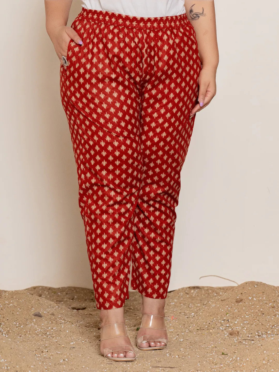 Maroon Embroidered Cotton Plus Size Kurta Dupatta Set