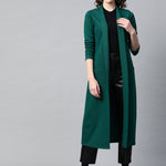 Emerald Rib Front Open Longline Shrug, in Flat Rib fabric, Unlined, Ankle Length, Comfort Fit, No Closure, Straight Hemline and features Patch Pocket At Front