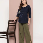 Navy Floral Chikankari Embroidered Pure Cotton Top