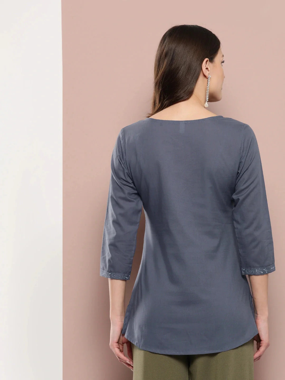 Grey Floral Chikankari Embroidered Pure Cotton Top