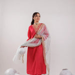 Fuchsia Silk Embroidered Kurta Dupatta Set