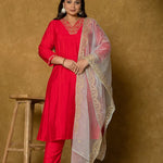 Fuchsia embroidered Kurta with Trousers with dupatta