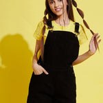 Black Denim Playsuit, in Denim fabric, Unlined, Thigh Length, Comfort Fit, Button Closure, Straight Hemline and features Pocket Detail At Front