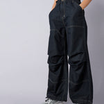 Black Wash Tencel Pull Hem Cargo Jeans, in Tencel Denim fabric, Unlined , Full Length , Straight Fit , Button Closure , Straight Hemline and features Paper Bag Waist Detail