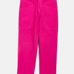 Fuchsia Front Pocket Straight Jeans, in Denim fabric, Unlined, Full Length, Straight Fit, Button Closure, Straight Hemline and features Pocket Detail At Front