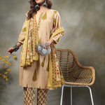 Green And Peach Floral Sequins Work Cotton A-Line Kurta And Trouser Dupatta Set