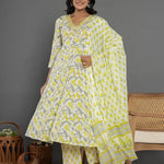 Green beads and stones Cotton Anarkali Kurta And Trouser with dupatta Set