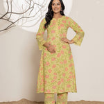 Green Floral Pakistani style A-line Kurta Trouser Set,