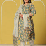 Green Cotton A-Line Plus Size Kurta Set