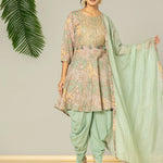 Green Cotton Embroidery A Line Kurta Dupatta Set