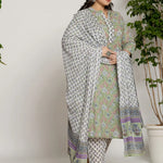 Green Cotton Green Plus Size Kurta Dupatta Pant Set