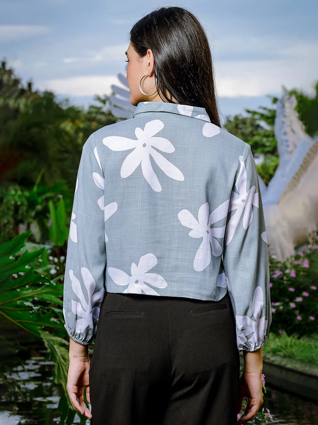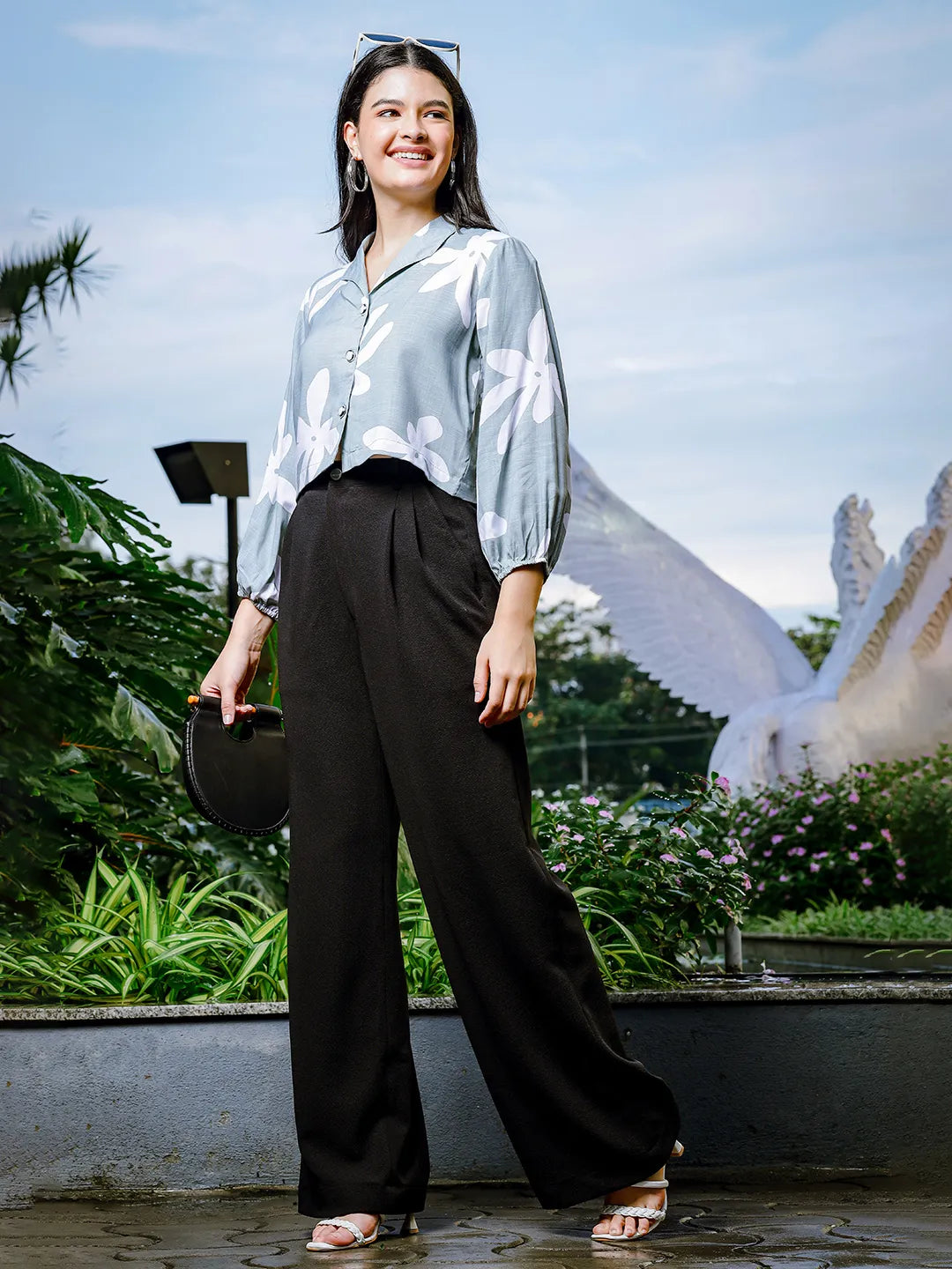 Green Cotton Linen Bishop Sleeve Shirt Style Top