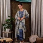 Green Floral Print Pure Cotton(Schiffli) Straight Kurta And Trouser with dupatta Set