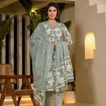 Green Cotton Straight Paisley Print Kurta With Trousers And Dupatta Set
