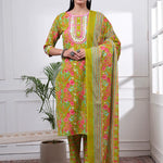 Green Floral Print Straight Kurta Trouser Dupatta Set