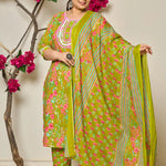 Green Floral Print Straight Plus Size Kurta Trouser Dupatta Set