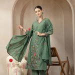 Green Mul Chanderi Embroidery A-Line Kurta Trouser Dupatta Set