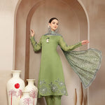 Green Mul Chanderi Silk Keyhole Neck A-Line Kurta Trouser Dupatta Set