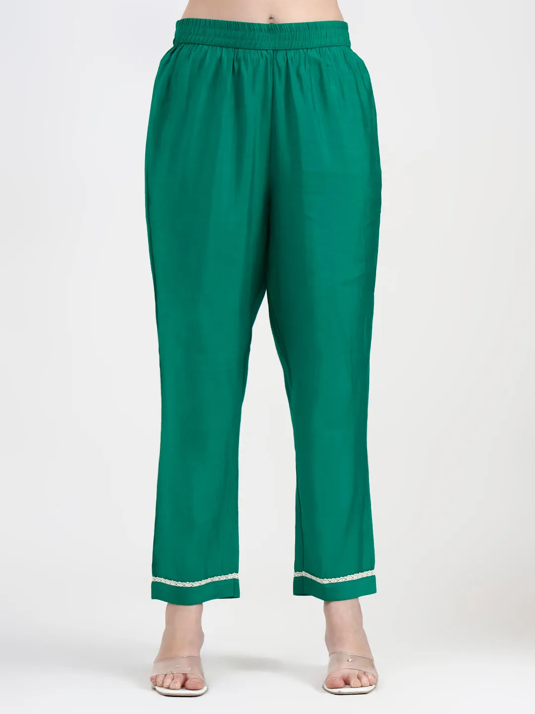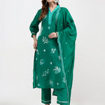 Green Mul Chanderi Thread Work Sequins Work Straight Kurta Trouser Dupatta Set