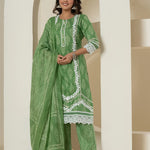 Green Patch Work Pure Cotton Straight Kurta And Dupatta Set