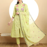 Green Pure Cotton A-Line Embroidered Kurta Dupatta Set