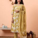 Green Pure Cotton Ethnic Motifs Straight Kurta Pant Set