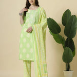 Green Pure Cotton Floral Printthreadwork Kurta Dupatta Pant Set
